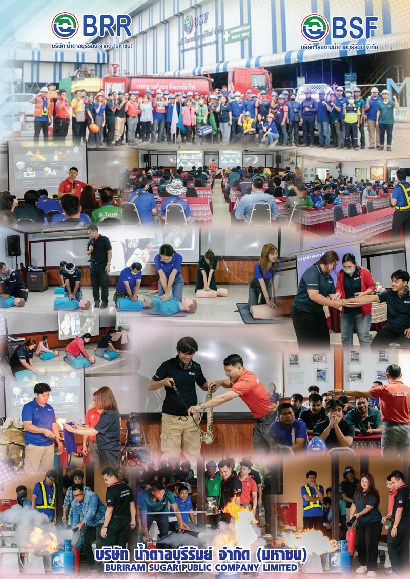 เมื่อวันที่ 15 พฤษภาคม 2568 บริษัท โรงงานน้ำตาลบุรีรัมย์ จำกัด จัดอบรม “หลักสูตรการดับเพลิงเบื้องต้น การดับเพลิงขั้นต้น และการฝึกซ้อมอพยพหนีไฟ” โดยการจำลองเหตุการณ์ และฝึกซ้อมเสมือนเหตุการณ์จริง ตามแผนป้องกันและระงับอัคคีภัยของสถานประกอบ พร้อมหลักสูตรการปฐมพยาบาลเบื้องต้นให้แก่พนักงานบริษัท เพื่อให้ผู้เข้าร่วมฝึกอบรมฯ มีความรู้และความเข้าใจเกี่ยวกับอัคคีภัย มีทักษะและความพร้อมในการเผชิญกับสถานการณ์เพลิงไหม้ที่อาจเกิดขึ้นได้ ได้ทราบถึงแนวทางในการป้องกันและการปฏิบัติตนเมื่อเกิดเพลิงไหม้ รวมถึงมีการสาธิตการใช้อุปกรณ์ดับเพลิง หลักการดับเพลิงขั้นต้นฝึกดับเพลิงด้วยมือ กรณีเกิดเหตุก๊าซหุงต้มรั่วไหล การค้นหาและช่วยเหลือผู้ประสบภัย และให้การช่วยเหลือปฐมพยาบาลผู้บาดเจ็บ ผู้ป่วยฉุกเฉินเบื้องต้นก่อนนำส่งไปรับการรักษาต่อในโรงพยาบาล โดยมีเจ้าหน้าที่ ศูนย์ฝึกอบรมด้านความปลอดภัย เอที เซล เซอร์วิส แอนด์เทรนนิ่ง โดยร่วมกับ โรงพยาบาลคูเมือง และเทศบาลตำบลหินเหล็กไฟ มาให้คำแนะนำในรายละเอียดทุกขั้นตอน