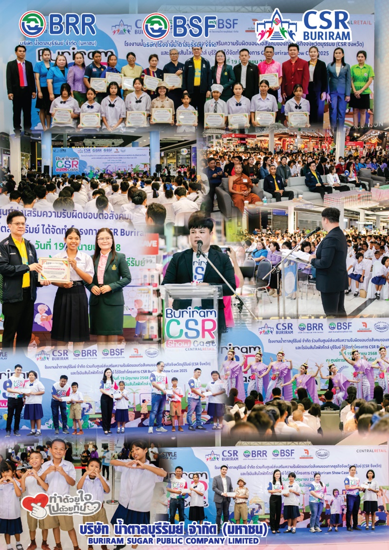 เมื่อวันที่ 19 มิถุนายน 2568 บริษัท น้ำตาลบุรีรัมย์ จำกัด (มหาชน) และบริษัทในเครือฯ นำโดย คุณจิตติมา ตั้งตรงเวชกิจ รองประธานเจ้าหน้าที่บริหาร บมจ.น้ำตาลบุรีรัมย์ พร้อมด้วยผู้บริหารบริษัทในเครือฯ กลุ่มน้ำตาลบุรีรัมย์ ได้จัดโครงการ CSR Buriram Show case 2025 โดยน้ำตาลบุรีรัมย์ ร่วมกับโรบินสันไลฟ์สไตล์บุรีรัมย์ บริษัท เค เอ็ม ไอ ฟอเรสต์ จำกัด และศูนย์ส่งเสริมความรับผิดชอบต่อสังคมภาคองค์ดรธุรกิจจังหวัดบุรีรัมย์ (CSR จังหวัดบุรีรัมย์)