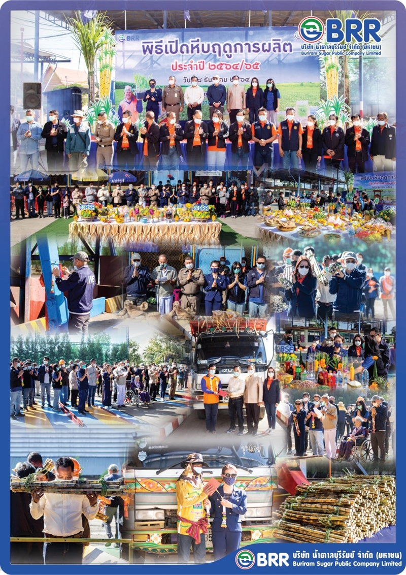 บริษัท น้ำตาลบุรีรัมย์ จำกัด (มหาชน) ร่วมกับ บริษัท โรงงานน้ำตาลบุรีรัมย์ จำกัด และบริษัทในเครือฯ ดำเนินการจัดทำพิธีบวงสรวง และพิธีโยนอ้อยเปิดฤดูการผลิต ประจำปี 2564/65 ขึ้นในวันที่ 8 ธันวาคม 2564 โดยได้รับเกียรติจาก คุณอนันต์ ตั้งตรงเวชกิจ ประธานกรรมการบริหารพร้อมทั้งกรรมบริหาร แขกผู้มีเกียรติ พนักงานในกลุ่มน้ำตาลบุรีรัมย์ฯ สมาคมชาวไร่อ้อยบุรีรัมย์ นายอำเภอคูเมือง เทศบาลตำบลหินเหล็กไฟ นักธุรกิจไร่อ้อยบุรีรัมย์ และชุมชนรอบๆ สถานประกอบการ มาร่วมงานพิธีบวงสรวงในครั้งนี้ เพื่อความเป็นศิริมงคล ขวัญกําลังใจ แก่นักธุรกิจไร่อ้อย บุคลากรกลุ่มน้ำตาลบุรีรัมย์และผู้เข้าร่วมพิธี ทุกท่าน ซึ่งพิธีนี้เราถือปฏิบัติสืบทอดกันมาทุกๆ ปี