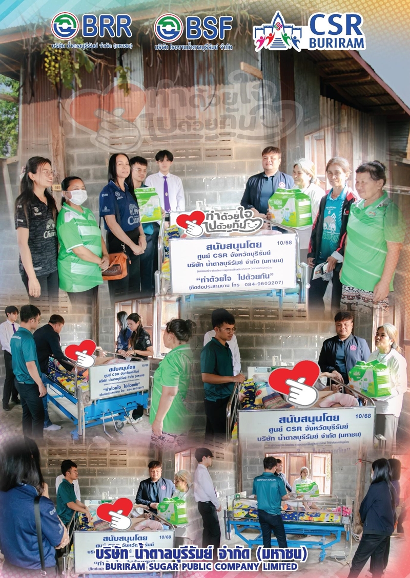 เมื่อวันที่ 19 มีนาคม 2568 บริษัท น้ำตาลบุรีรัมย์ จำกัด (มหาชน) และบริษัทในเครือฯ นำโดยนายนิรุต ศิริชาเครือ ผู้จัดการสำนักมวลชนสัมพันธ์และสื่อสารองค์กร เป็นตัวแทนบริษัทฯ ร่วมกับ ศูนย์ CSR องค์กรภาคธุรกิจจังหวัดบุรีรัมย์ โรงพยาบาลคูเมือง และศูนย์ซ่อมกายอุปกรณ์ วิทยาลัยเทคนิคคูเมือง มอบเตียงพร้อมแพมเพิสผู้ใหญ่ให้กับผู้ป่วยติดเตียง บ้านหัวถนน ต.พรสำราญ อ.คูเมือง จ.บุรีรัมย์ ในเขตการดูแลของ รพสต.บ้านโคกก่อง ต.หินเหล็กไฟ เพื่อให้ผู้ป่วยติดเตียงได้มีเตียงนอนที่ถูกต้องตามสรีระ ลดการเป็นแผลกดทับ ช่วยให้การดูแลผู้ป่วยง่ายและสะดวกสบายยิ่งขึ้น อำนวยความสะดวก ในการช่วยเหลือ และบรรเทาความเดือดร้อนให้กับประชาชนกลุ่มเปราะบาง “ทำด้วยใจ ไปด้วยกัน” “น้ำตาลบุรีรัมย์ เพื่อชุมชน และสังคม”