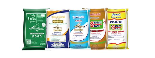 สำหรับปุ๋ยที่จำหน่ายให้แก่เกษตรกรชาวไร่อ้อย ใช้เครื่องหมายการค้าตรา “กุญแจเคบีเอฟ” และสำหรับตลาดภายนอกใช้เครื่องหมายการค้าตรา “ปลาบิน” โดยสูตรปุ๋ยของบริษัทได้รับการรับรองจากหน่วยงานราชการที่เกี่ยวข้องแล้ว